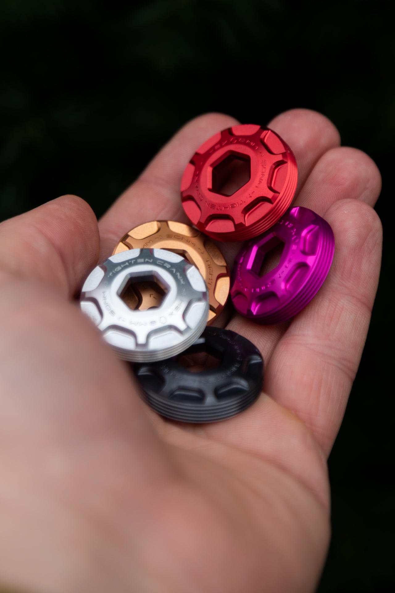 The OAK Crank Ejecter Cap Set gives your crank a clean upgrade while adding a bold splash of color. Designed to fit OAKs and a wide range of SRAM cranksets, this set includes everything you need for the install.