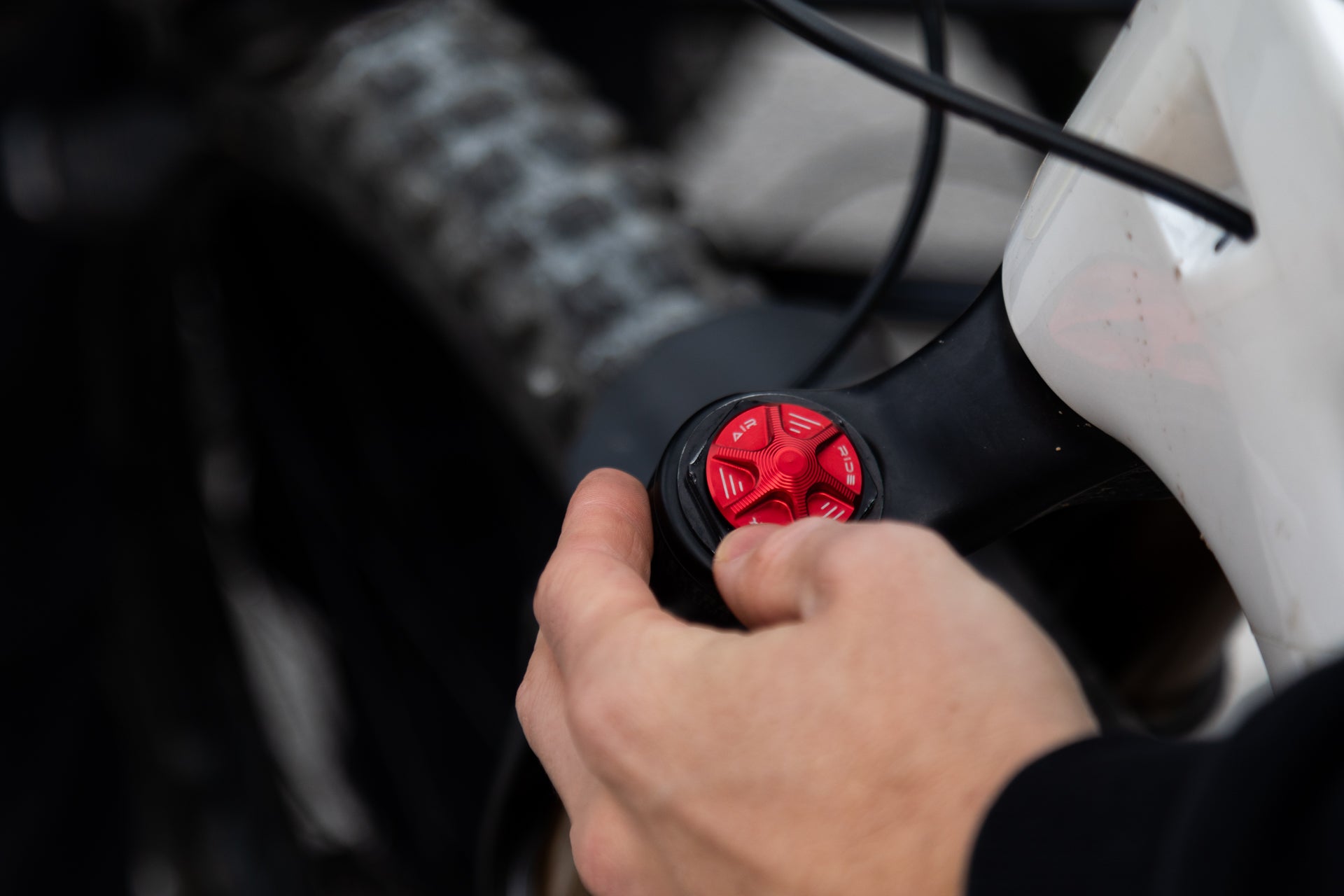Das unverwechselbare Design und der farbliche Akzent wird dir bei jedem Ride ins Auge springen. Der kleine aber feine Unterschied. Ideal als Ergänzung zur OAK Forkcap HSC für Fox Federgabeln.
